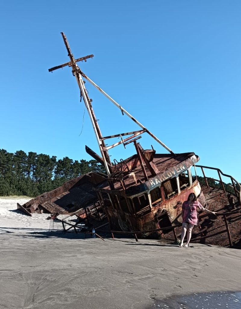 Barco Barlovento: Siguiendo por la playa de Laraquete a 7 kilómetros al sur, se encuentra un viejo Barco encallado en medio de la playa. en sector Horcones, un viejo barco encallado en plena playa del sector Horcones. El paso se los años y la fuerza de las olas del mar han dejado huellas visibles en la estructura.